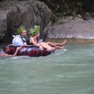 Сегодня, после завтрака и кофе, мы отдохнем на берегу реки, исследуем её окрестности, и отправимся на плотах в обратный путь, в Букит Лаванг. Плот представляет собой несколько автомобильных покрышек, связанных вместе. Грести не надо, течение само донесет нас до места.