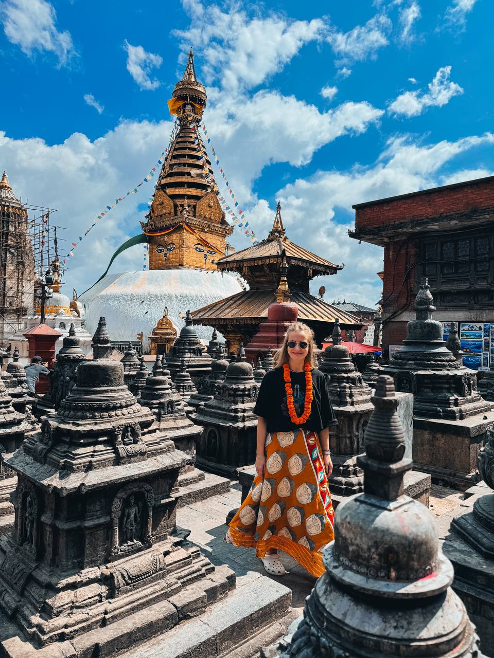 - Прогуляемся по шумным улочкам Катманду, поднимемся на ступу Сваямбунатх, прогуляемся по храмовому комплексу Пашупатинатх, зайдем на самый большой рынок города - Тамель