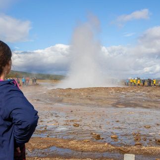 Далее наше воображение потрясет долина гейзеров Хаукадалур (Haukadalur), где мы увидим как огромный столп воды вырывается в небо показывая мощь тепла Земли. Здесь нам не помешают дождевики.
