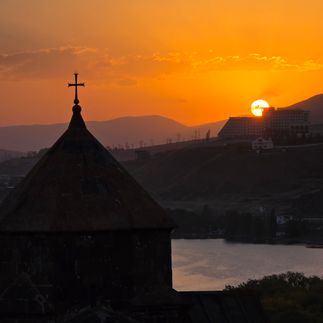 На полуострове поднимемся к монастырю Севанаванк - одному из самых красивых символов озера. Отсюда открываются панорамы, которые невозможно не фотографировать и невозможно забыть. И здесь нас ждёт особенный момент: над гладью Севана мы станцуем тот самый армянский танец, который выучили раньше.
