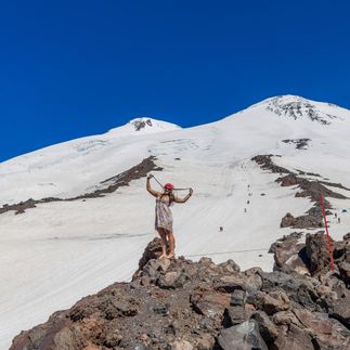 Утром мы на автобусе доедем до поляны Азау и поднимемся по маятниковой канатной дороге до высоты 3 500 м, после чего совершим переход до скал Мчс - до высоты 4400 м. Подниматься будем по склону Эльбруса, а за спиной откроется грандиозная панорама Большого Кавказского хребта. Научимся правильно ходить и дышать на высоте. К вечеру спустимся обратно на поляну Азау и вернемся в гостиницу.