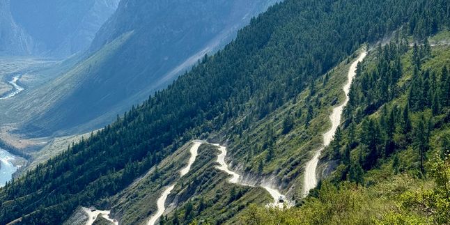 Величественный серпантин: Дорога, спускающаяся с перевала в долину, состоит из девяти крутых петель и является одной из самых впечатляющих в России.