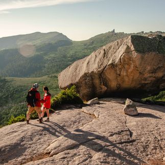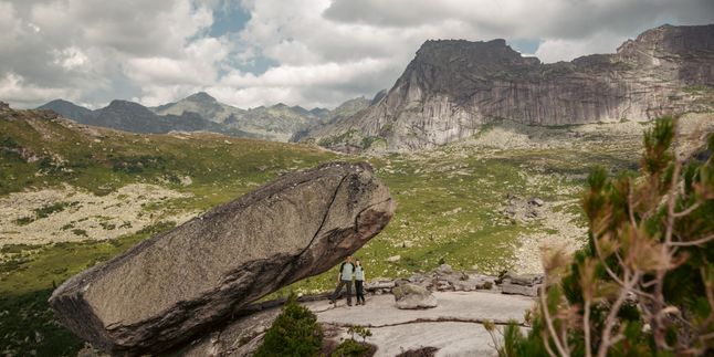 Также без рюкзаков радиальный маршрут на гору Тушканчик высотой 1998 м Нум, откуда открывается панорама на все 360, а на обратном пути заходим на Висячий камень