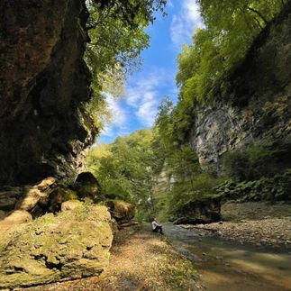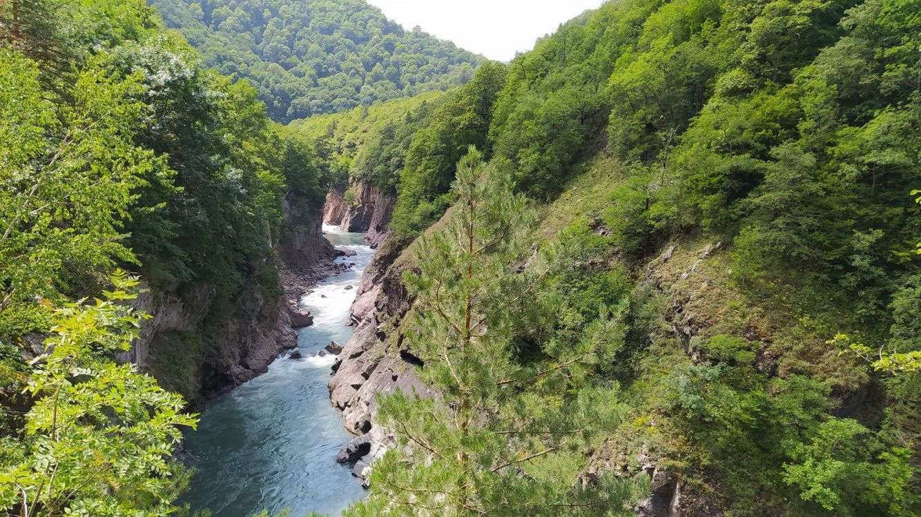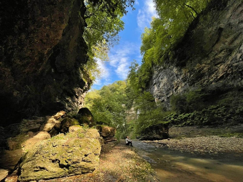 А затем нас ждёт прогулка по ущелью Мишоко, в переводе с адыгейского — «медвежья долина». Учёные провели раскопки в местной пещере и нашли следы жизни первобытных людей. А главное, отсюда открываются виды на красочные пейзажи и живописное ущелье.