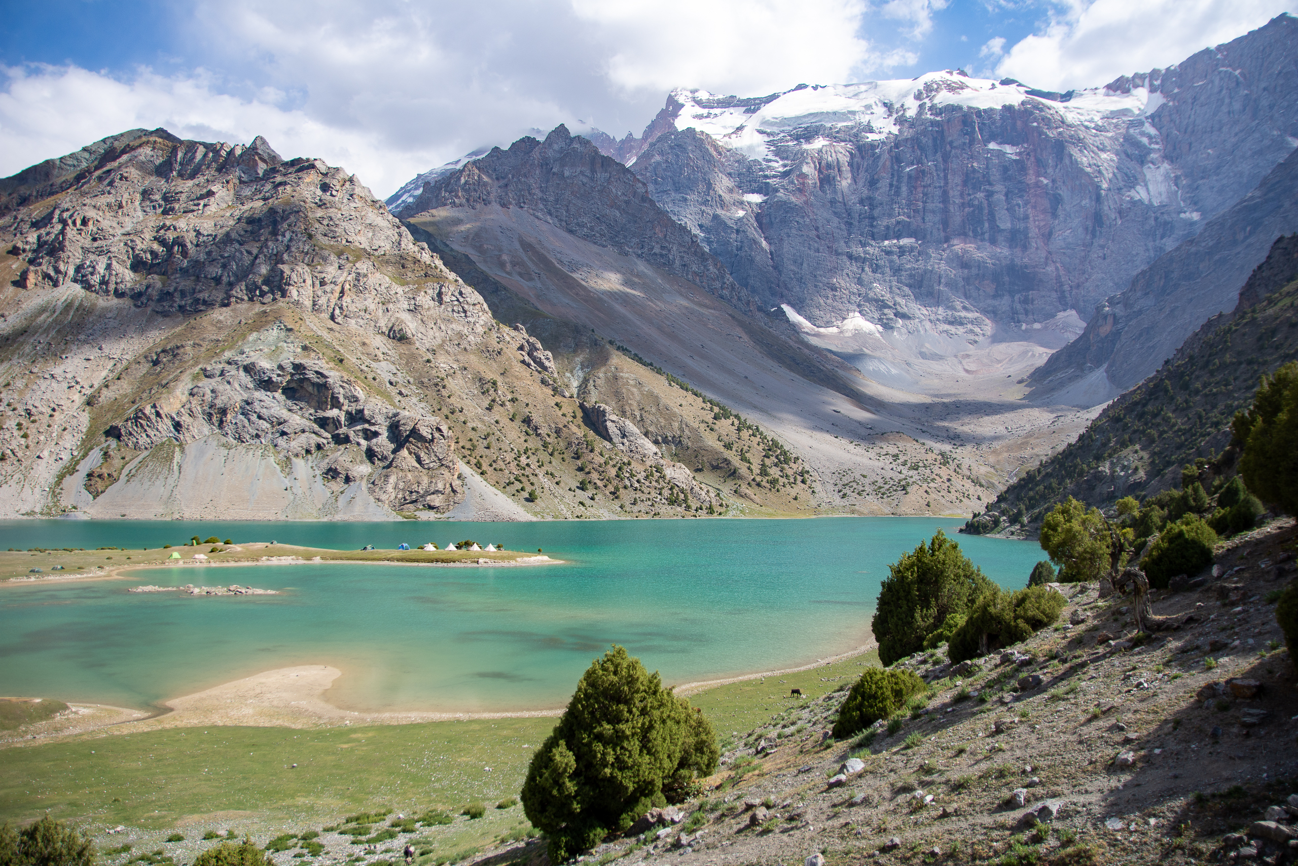 Увидим прекрасные Фаны без тяжёлых рюкзаков! Нас ждут величественные горы и сверкающие ледники, причудливо скрученные деревья и бирюзово-изумрудные озёра, мириады звёзд по ночам и крики осликов по утрам :) А также легендарное восточное гостеприимство, арбузы, плов и романтика настоящего горного похода. Маршрут проходим до начала высокого сезона, а это значит, что туристов ещё немного, а поляны покрыты свежей травой.