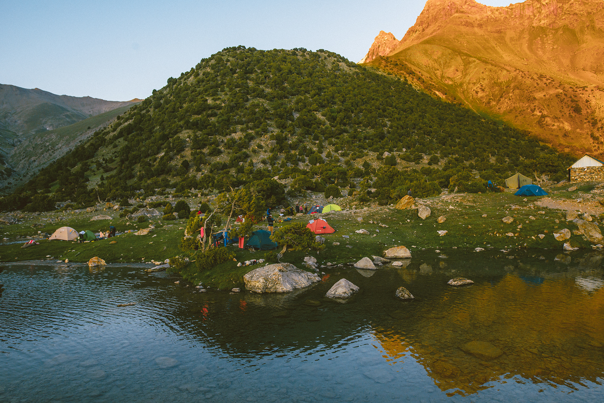 Встаем рано утром, но в горах вам и не захочется долго спать, ведь вокруг такая красота! Завтракаем, собираем лагерь, разминаемся и налегке отправляемся в путь. Будет непросто — жара и высота дают о себе знать. Идём медленно, учимся дыханию и шагу. Ветер и солнце в волосах, горы вокруг и бирюзовые озёра вдалеке. Приходим на стоянку на озеро Кулисиёх, знакомимся с пастухом Сироджем, смотрителем этих мест, и разбиваем лагерь. После обеда можно прогуляться на соседнее озеро Бибиджанат и полюбоваться закатом над горами.