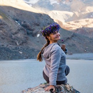 Сегодня можно остаться в лагере, чтобы отдохнуть, искупаться и поваляться с книгой под деревом. А все, кто не устал, отправляются налегке гулять до Мутных озёр. Идти немного, но всё время вверх. Чем выше мы идём, тем более суровой и безжизненной становится природа вокруг. Поднимаемся по ущелью и выходим к озеру Пиала (2950 м). В особенно жаркое время оно может полностью пересохнуть. Сделаем небольшой привал, самые смелые могут окунуться в ледяную воду. Дальше преодолеем каменные насыпи и выйдем к Мутным озёрам (3500 м). Здесь уже значительно холоднее, нет растительности, кругом грандиозные отвесные скалы и ледовые карнизы. Дышим горами и высотой, перекусываем и спускаемся в лагерь. Наслаждаемся появляющейся вокруг зеленью, журчанием чистой воды в реке, тёплой компанией.