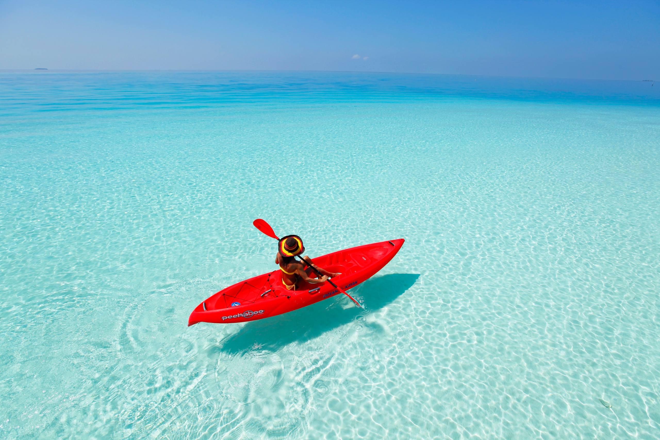 Покатаемся на каяках. Ты скользишь по лазурной глади, под тобой — кораллы, над тобой — склоняющиеся пальмы, рядом — черепашки, которые иногда выныривают, чтобы выразить тебе своё восхищение. Ловим баланс и живём свою лучшую жизнь!