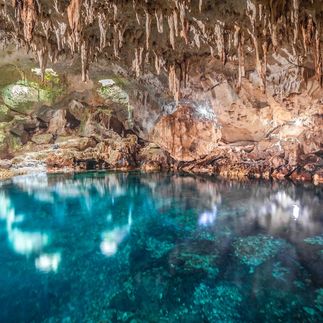 Мёд не твоя тема? Тогда альтернативный квест: плывём в пещеру. В подземном царстве вода цвета волшебства, потому что лучи солнца пробиваются через свод, озаряя изумрудные воды подземелья. А если повезёт, можно послушать местных, которые поют тут иногда народные песни.
