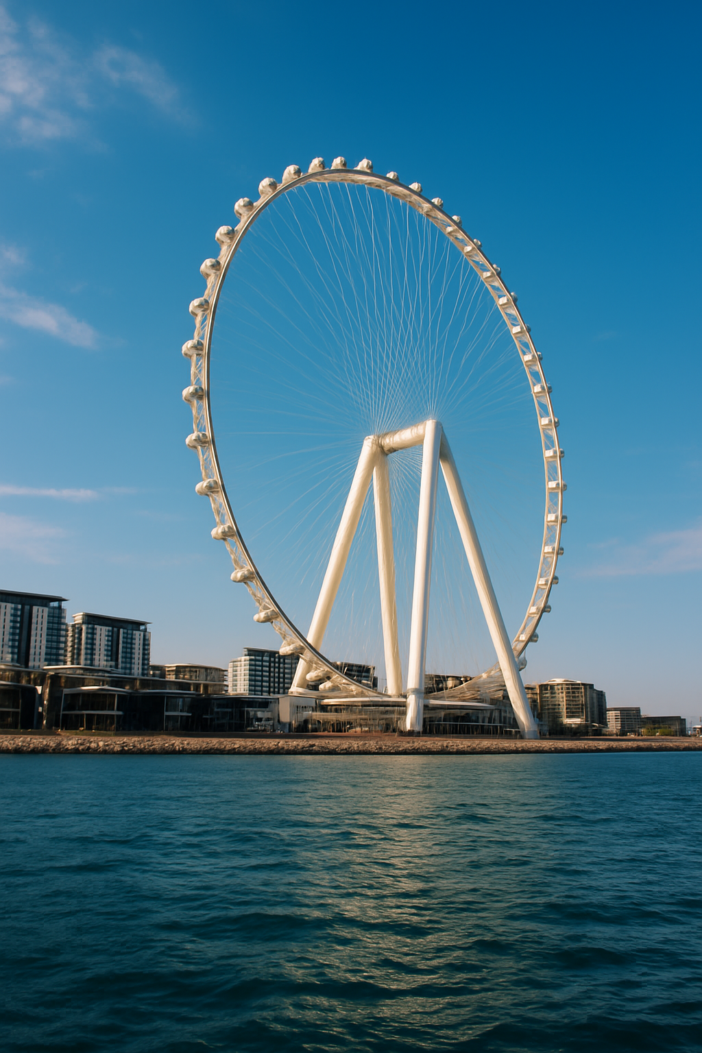Утро начинаем на пляже Jbr - где белый песок и бирюзовое море создают настроение отпуска - Рядом высится легендарное колесо Ain Dubai - идеальное место для вдохновляющих фото.