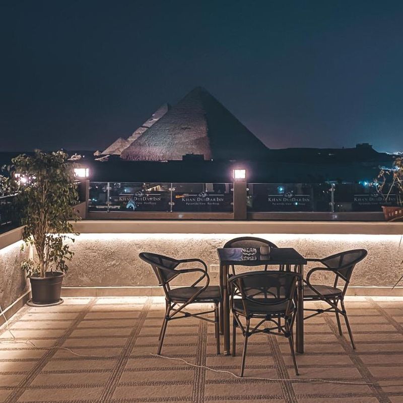 Позавтракаем в кафе на плато Гизы с потрясающим видом на пирамиды.