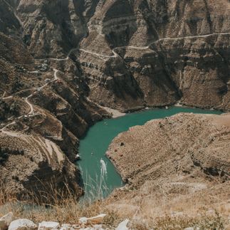 День резких, почти кинематографичных контрастов. Утром мы на краю Сулакского каньона - глубже, чем Гранд-Каньон. Обедаем в ресторане, который будто висит в воздухе над пропастью.