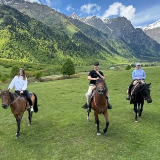 Мы отправимся в Мазери, к самому подножию величественной Ушбы. Здесь можно будет выбрать один из вариантов маршрута: либо отправиться в пеший поход, либо прокатиться на лошадях до водопадов Шдугра — одних из самых красивых в регионе.