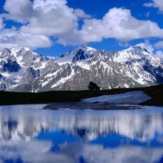 Мы поднимемся на Хацвали по канатной дороге и полюбуемся панорамными видами на заснеженные вершины. После обеда нас ждёт поездка к озёрам Корульди. На внедорожниках мы поднимемся на высоту 2800 метров, а затем выпьем горячий чай у креста с видом на Местию — сердце Сванетии.