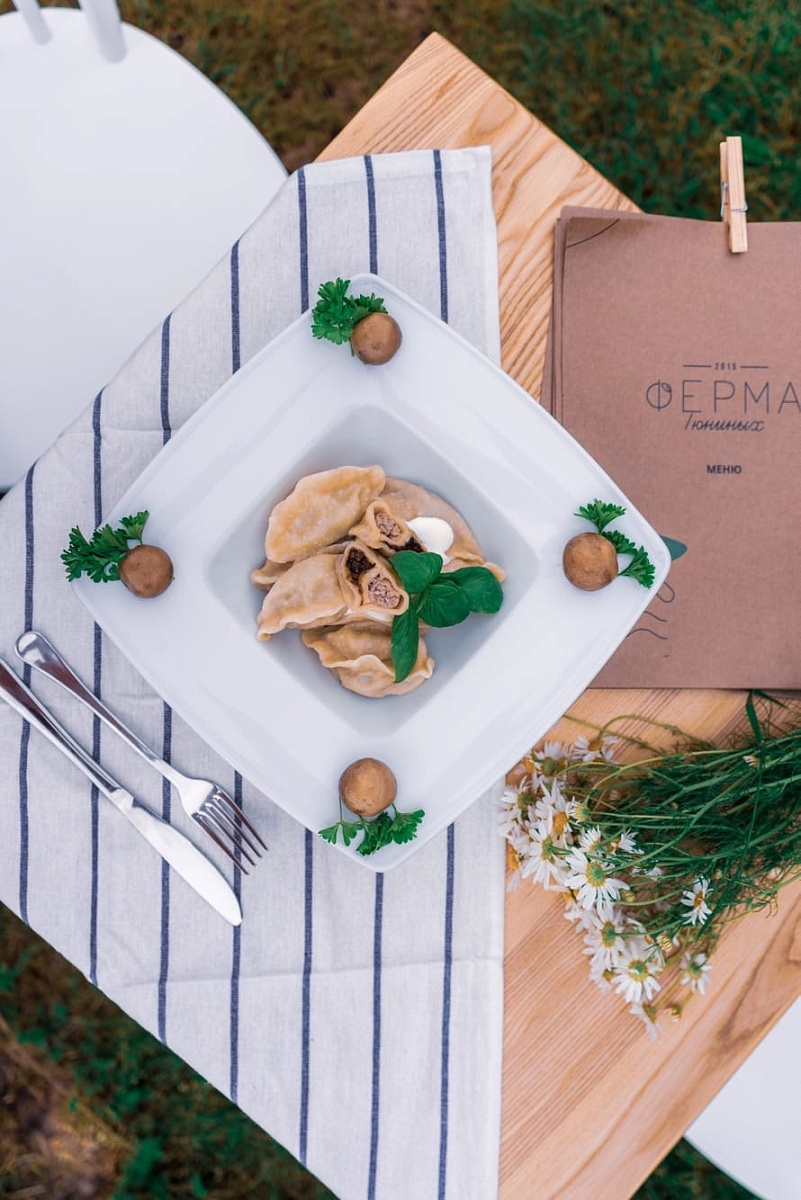 Обедать будем на легендарной Ферме Тюниных в Знаменске. Талантливый шеф-повар превращает свежие фермерские продукты в кулинарные шедевры, способные удивить даже самых искушённых гурманов.