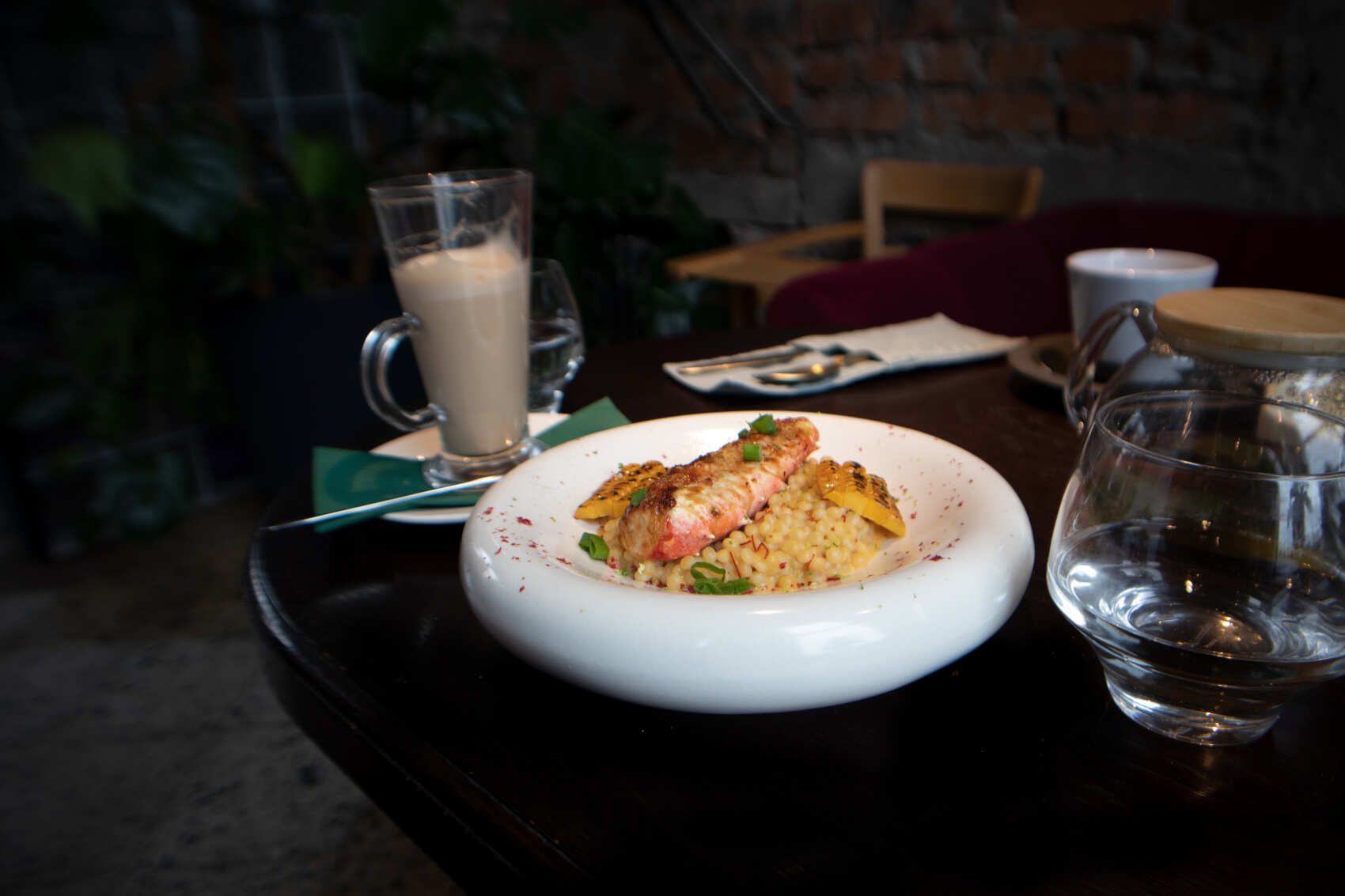 Меню: смореброд с крабом и сырным кремом, суп Териберского рыбака, гребешки, морковный крем, соус понзу, лавандовый крем-брюле с маринованной черникой, чай.