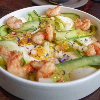 • Из Баренцева моря: гребешки на устричной траве, мясо краба в хитине, северная креветка, ёж или кальмар.