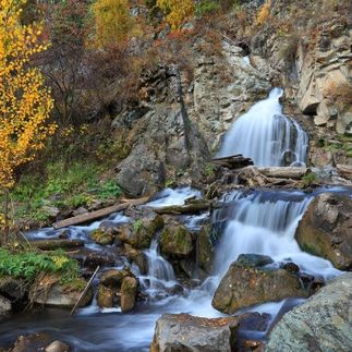 Затем посмотрим на водопад Девичьи слезы 12 метров вертикального падения. Далее прогуляемся пешком по старому участку Чуйского тракта, посмотрим памятник Водителям Чуйского тракта.
