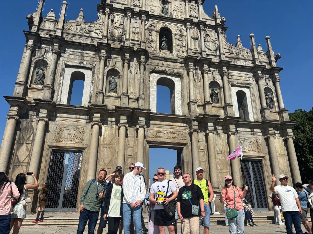 Следующая остановка знаменитые Руины Святого Павла (Ruins of St. Pauls), главный символ Макао. Сохранившийся фасад бывшего собора и лестница перед ним создают одну из самых узнаваемых панорам города.