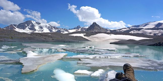 Наш путь лежит в небольшую висячую долину ледника Микельчиран, которая почти полностью заполнена одноимнным озером.