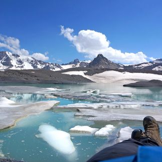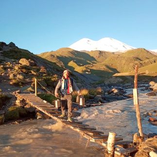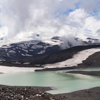 На склонах Эльбруса берут начало 23 ледника, но далеко не каждый из них дат жизнь высокогорному озеру. А если так происходит - пейзаж неизменно вокруг величественный, на этой неделе убедитесь в этом дважды :)). Наш путь лежит в небольшую висячую долину ледника Микельчиран, которая почти полностью заполнена одноимнным озером. Сегодня предстоит попетлять по лавовым лабиринтам и пересечь несколько неожиданно плоских полей, которые тут называют аэродромами. Почувствуете, как это подниматься и спускаться по вулканическому шлаку. К озеру Микельчиран подойдм сверху: отсюда кажется, что это не озеро, а разлом в древнем безжизненном пейзаже, через который просочилось живое небо. Спустимся к воде и, если погода выдастся ясной и безветренной, отобедаем с видом сразу на четыре вершины Эльбруса, две из которых будут переврнуты. Активная часть тура на Джилы-Су: 10,2 км, перепад высот 2570-3340 м, продолжительность похода 7-8 часов.