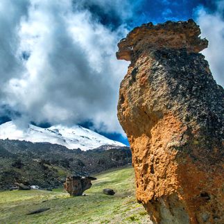 Во время поездки в Джилы-Су вы очень скоро поймете, что необычных мест в Приэльбрусье хоть отбавляй. Одно из них совсем рядом - это Поляна грибов. Веками ветер и дождь обтесывали горную породу, которая превратилась в причудливые изваяния каменные грибы. Одни грибы совсем маленькие, другие выросли до двух, трех и даже пяти метров в высоту! Фото здесь получаются невероятные)))). Как и положено, грибы Джилы-Су обладают мощной энергетикой и создают вокруг себя особенную зону. Часто здесь бывают погодные сюрпризы: везде может идти дождь, а над грибами синее небо и светит солнце. Еще выше Каменных грибов находится базовый лагерь альпинистов, здесь уже нет зелени, вокруг только камни и снег. Именно из этого лагеря начинаются туры с восхождением на Эльбрус. Бронирование мест на отдых в Джилы-Су альпинисты совершают заблаговременно. Активная часть тура: 12,3 км, перепад высот 2570-3210 м, продолжительность похода 6-7 часов.