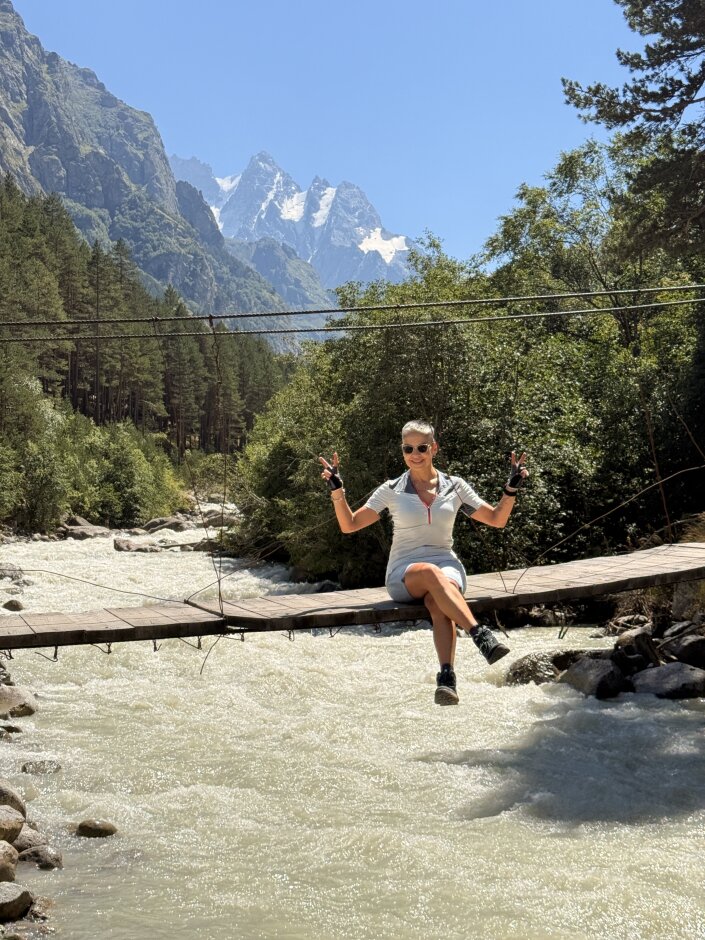 Сегодня трекинг к самому большому леднику Северной Осетии - Караугому. Тропа к леднику очень живописна. Она проходит через сосновый лес, пересекая реку по мостикам, а по пути встречаются кусты спелой малины и черники. Сам ледник - это невероятная мощь! Его длина - 13 км, а площадь - 20 кв. метров.