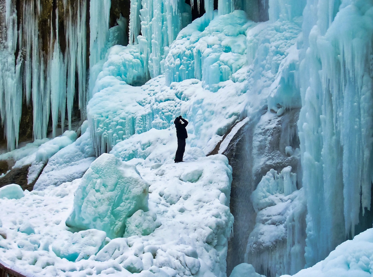 Добравшись до Эльбруса, свернём смотреть на одну из основных местных достопримечательностей — Чегемские водопады. Именно зимой это место особенно впечатляет, ведь замерзшие Чегемские водопады — поистине фантастическое зрелище.