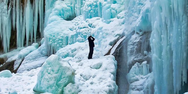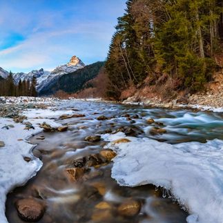 Представь: вода, стекая, постепенно замерзает и над Чегемом нависают огромные белоснежные сосульки, каскад которых спускается прямо к голубой реке, которая не замерзает даже в сильные морозы.