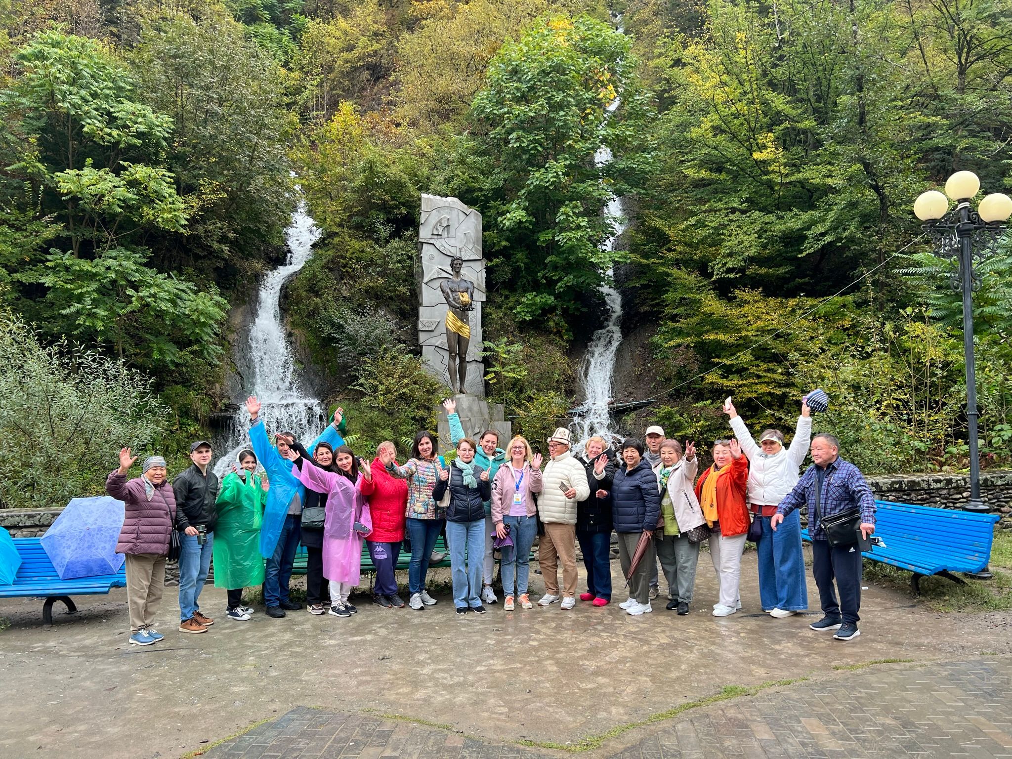мы обязательно остановимся на панорамной смотровой площадке советского периода Дружба Народов, откуда открывается живописный вид на глубокое ущелье Кавказского хребта, здесь неизменно получаются восхитительные кадры.
