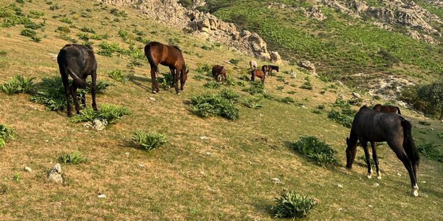 Это активный маршрут, а значит много ходим. Любуемся диким миндалём, зелёными лугами, табунами лошадей и горными тропами.