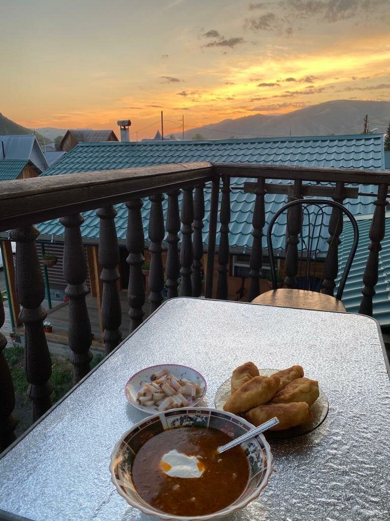 На вершине (1227 м) открывается потрясающая панорама долин, озёр и соседних хребтов — отличное место для фотографий. Устраиваем пикник и отдыхаем, наслаждаясь красотой вокруг. Затем возвращаемся в с. Чарышское, где вечером нас ждёт домашний ужин и баня с ароматным чаном, который как нельзя лучше поможет снять усталость после насыщенного дня.