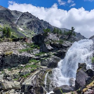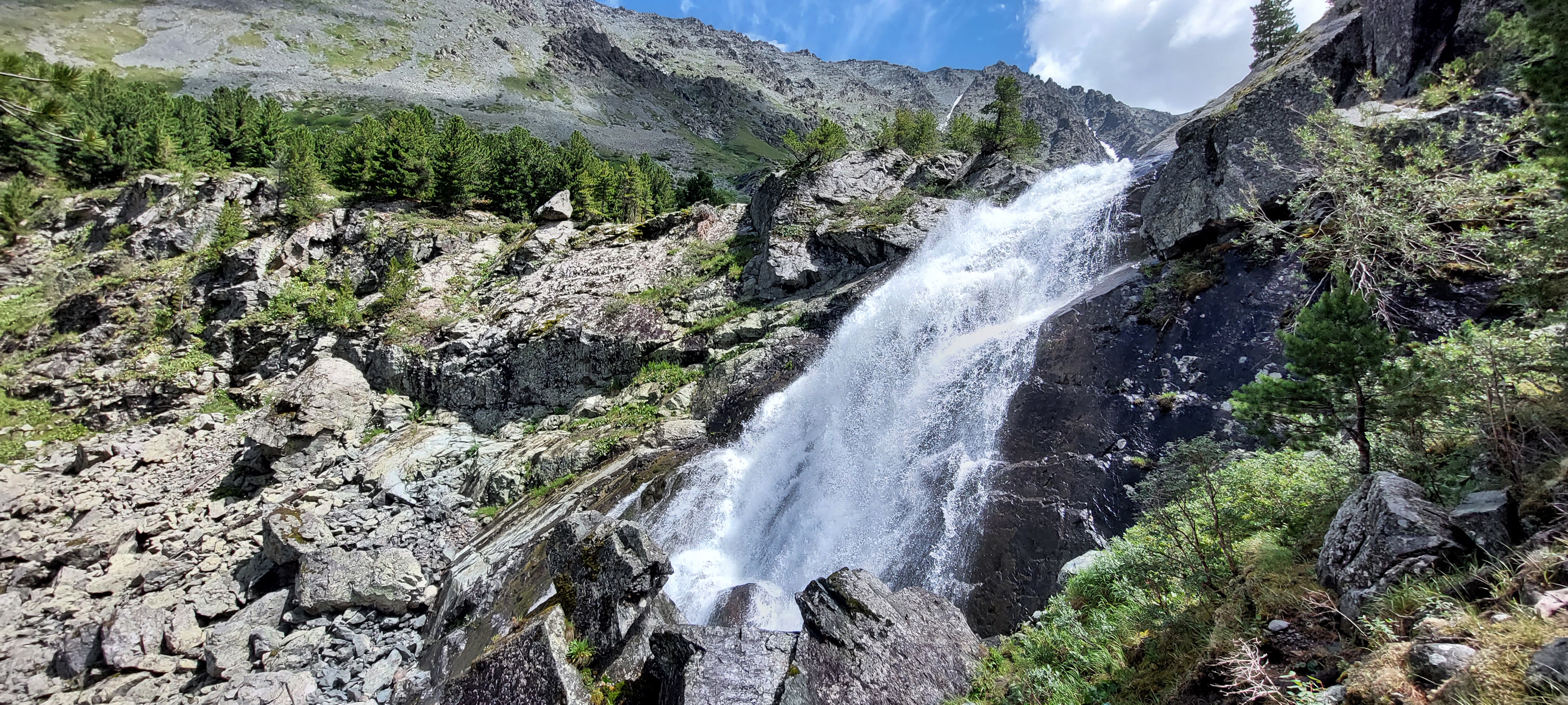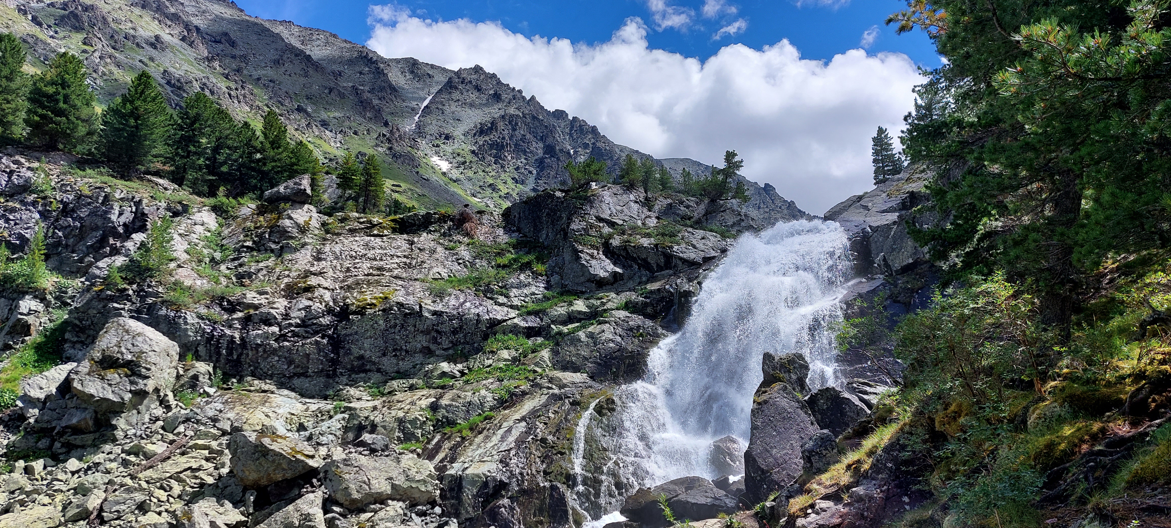 Водопад Куйгук оооочень привлекательный! Он рождается среди крупных камней и одним мощным каскадом спускается в долину. Водопад очень мощный и полноводный.