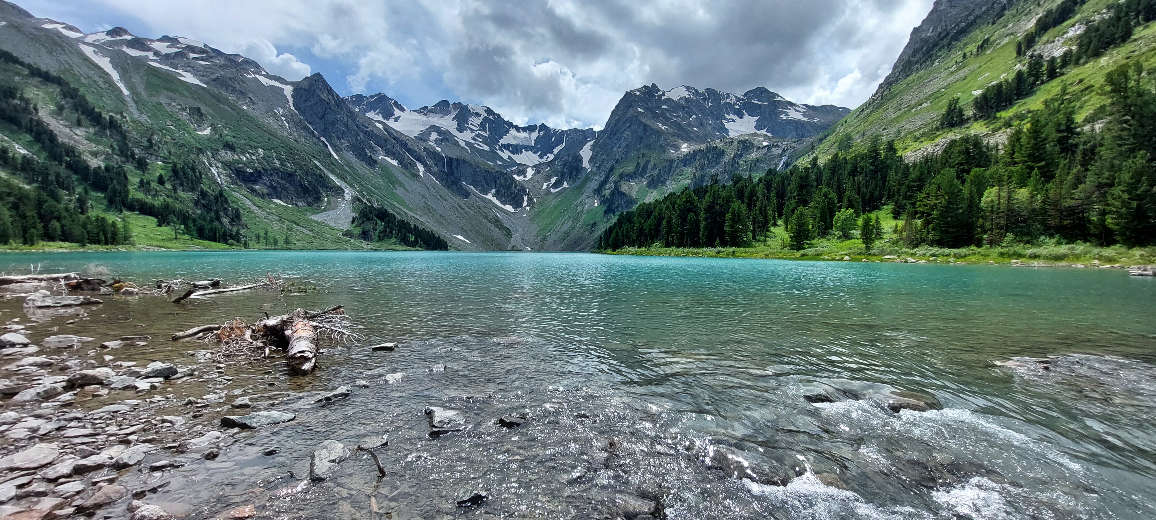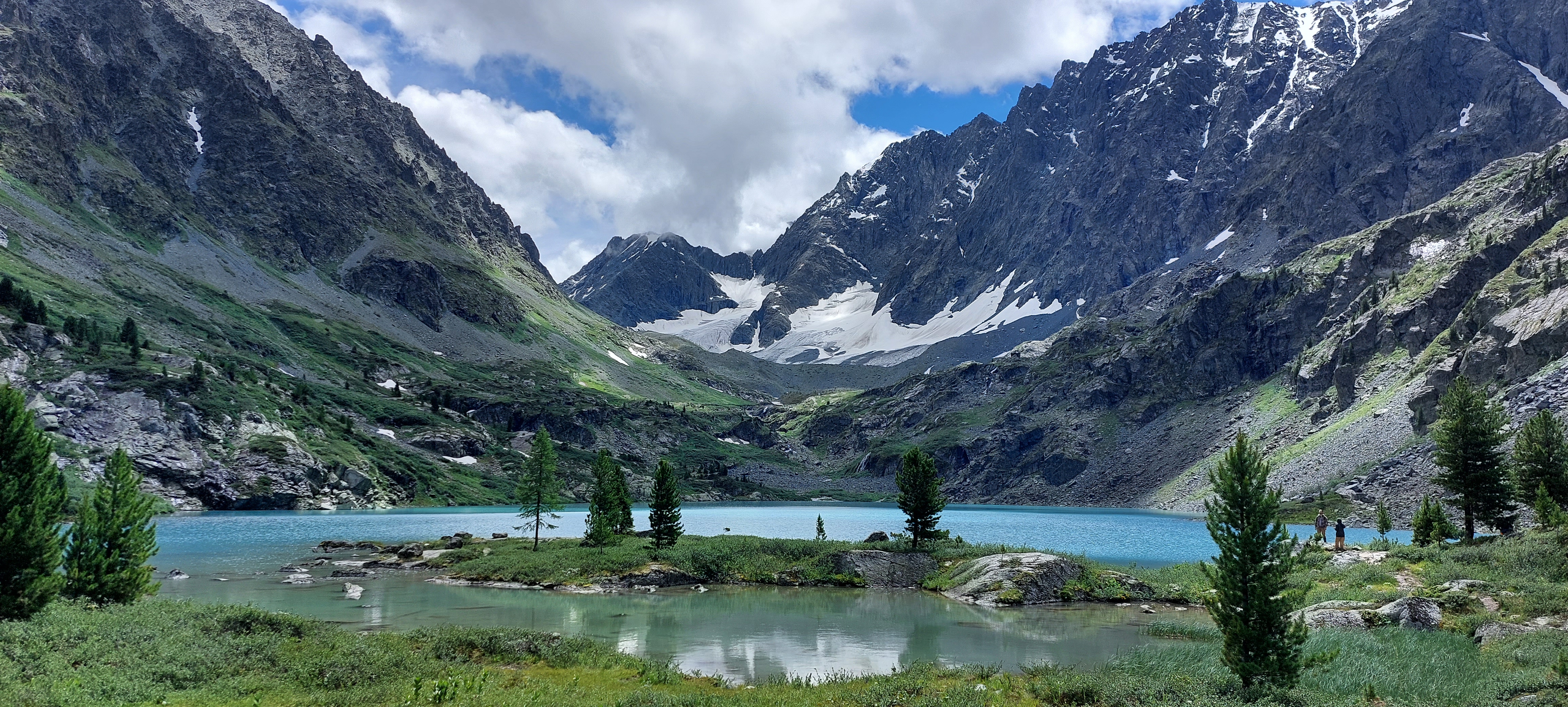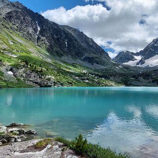 Поднявшись над водопадом, увидим небольшое озерцо Куйгук, а чуть далее нам откроется главное сокровище этой долины! Огромное, изумрудное, от которого невозможно оторвать глаз.
