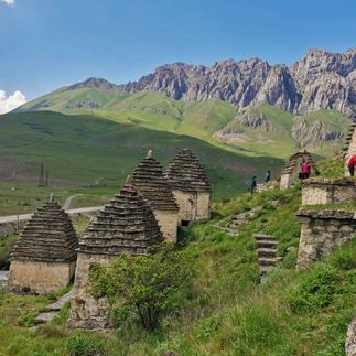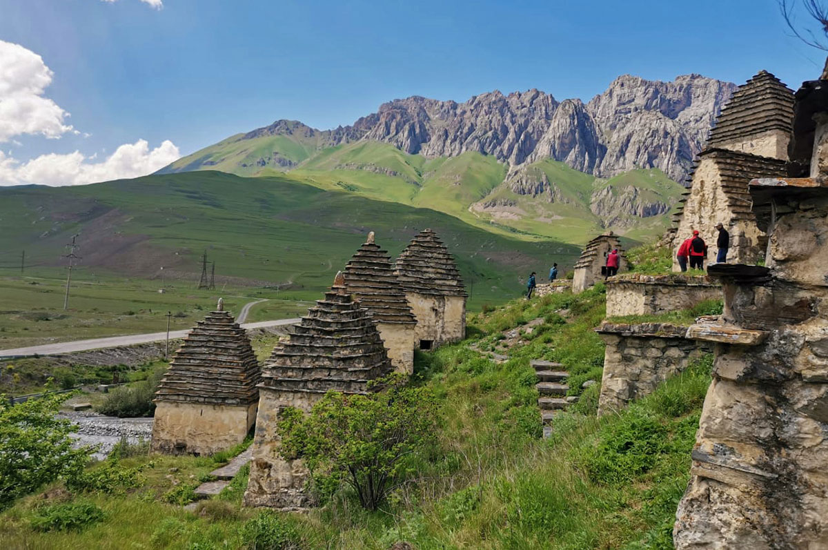 Одно из самых необычных мест сегодняшней экскурсии Даргавс, визитная карточка Осетии. Даргавс это некрополь, который насчитывает около 90 склепов построенных в виде пирамид.