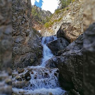 Затем идем на водопад Шагацикондон. Выговаривать это название получается не у всех и не с первого раза =)). Наши инструкторы тоже немало тренировались, чтобы смело произносить название водопада. Удобная экотропа приводит в живописный каньон, где и находится водопад. Он имеет несколько ступеней и игриво прыгает с уступа на уступ. В этом месте отдохнем, пообедаем и отправимся в обратный путь в лагерь. Также в этот день увидим интересный камень, на котором изображен цветной портрет Сталина и портрет осетинского просветителя Коста Хетагурова.