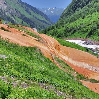 Сегодня выезжаем на горном транспорте пораньше, у нас много интересных дел! Приедем в ущелье реки Адзапш и начнем подниматься к Кислым источникам. На небольшой территории находится несколько разных по своему составу источников, где люди исцеляют свои недуги. Здесь можно попить вкусного нарзана :)