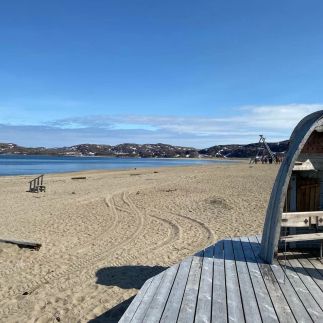Мы сделаем остановку на песчаном пляже у ресторанов Териберки, где можно покачаться на огромных качелях прямо у моря. Здесь же можно увидеть выброшенный на песок старый рыболовецкий корабль и посмотреть скелет кита, который использовали в съемках фильма Левиафан.