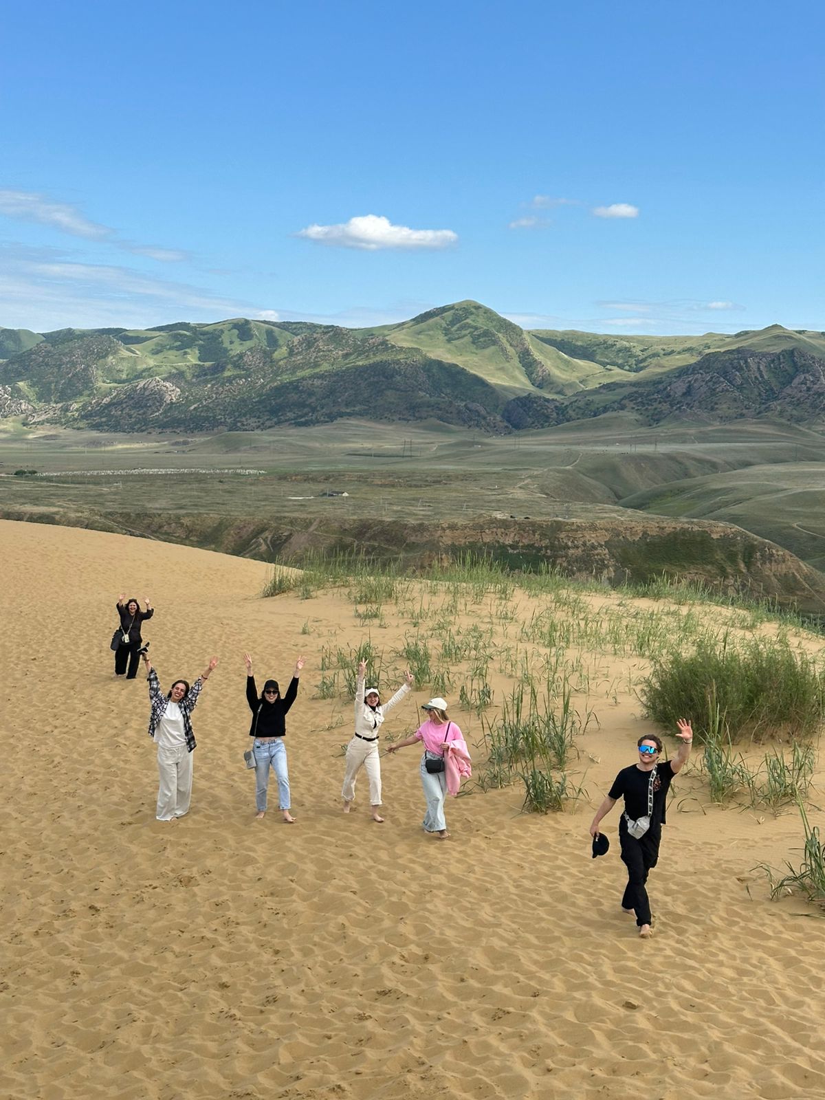 А в завершение дня нас ждет контрастная встреча с песчаным чудом — Барханом Сарыкум, самым высоким в Европе. Теплый золотистый песок под ногами, волны дюн на фоне гор — словно портал в другую страну, где пустыня и горы слились в единый пейзаж.