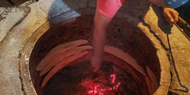 На обратной дороге в Тбилиси увидим, как в глиняной печи на дровах печётся традиционный шоти (лаваш) и при желании поучаствуем в процессе, а также заедем в магазин чурчхелы.