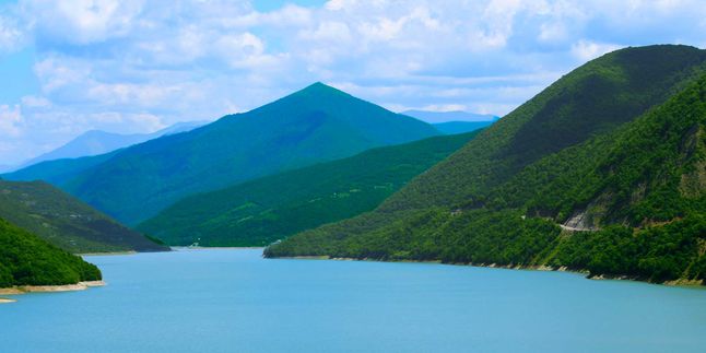 Военно-Грузинская дорога, церковь Святой Троицы в Гергети, Жинвальское водохранилище и крепость Ананури