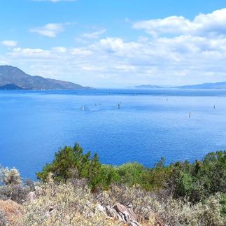 13:00 15:30: Встаем на якорь в Бухте Любви (Love Bay) на Поросе. Сосны свисают прямо к воде. Обед, сап-борды.