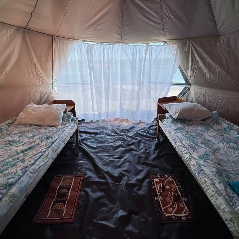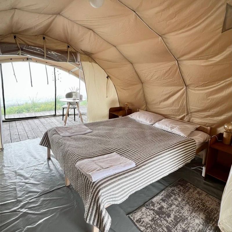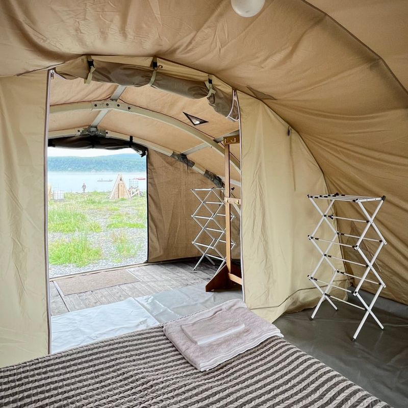 Наши уютные домики палаточного типа стоят прямо на берегу, здесь вид из окна - это возможность видеть фонтаны и слышать мощный выдох кита, не выходя из номера.