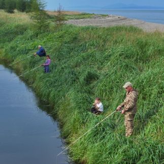 При наборе группы туристы выезжают на экскурсию речная рыбалка. Во время поездки у вас будет возможность поймать горбушу, красноперку или навагу. Пойманную рыбу можно приготовить в лагере и устроить вкусный обед из собственного улова. Даже если вы не увлекаетесь рыбалкой, эта экскурсия стоит внимания - вы сможете своими глазами увидеть рыбу в период нереста. Продолжительность экскурсии - полдня, возвращение к обеду.