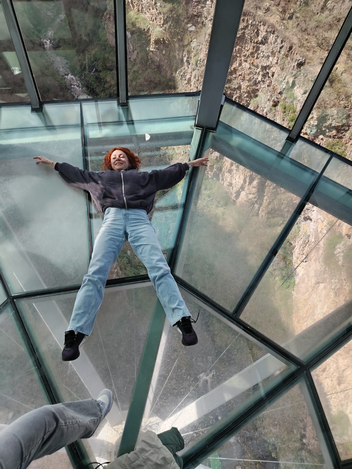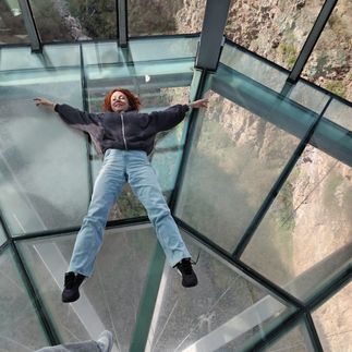 Это 8е чудо света - уникальный стеклянный мост был открыт 14.06.2022 Каньон располагается в 100 км к западу от Тбилиси. Высота каньона составляет 1100-1500 метров, а длина-8 км. На фото новая стеклянная постройка, и у вас будет возможность здесь прогуляться и прочувствовать сумасшедший вкус адреналина. Горная хорошо протоптанная тропа длиною в 1,5 км приведёт нас вниз к водопадам (30-45 минут несложной горной прогулки). Вы окажетесь в изумительном по красоте ущелье Дашбаши, где каскадом, разбитый на десятки потоков, стекает водопад. Этот каскад водопадов, даже назвали Плачущей Стеной. Водоросли и поросшие мхом уступы придают воде изумрудный цвет. А ветерок, поднимаемый горной рекой, дарит свежесть. Вы подойдёте к водопаду, полюбуетесь этим нерукотворным чудом и сделаете памятные фотографии на фоне потока и великанов-камней, разбросанных по округе.