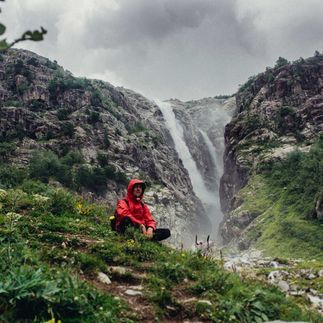 Оставляем рюкзаки в лагере и шагаем к водопадам Мазери, питающимися из ледника Ушбы. Акклиматизационный выход пройдет по крутым тропам, что поможет размяться после дороги и настроиться на активный треккинг. Здесь же можем встретить альпинистов, желающих взойти на вершину Ушбы.