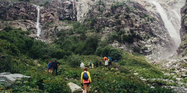 Первое утро в горах! Дежурные готовят вкусный и сытный завтрак. Делаем зарядку, берем с собой перекус и отправляемся в радиальный выход к Ушбинским водопадам. Путь непростой, хоть мы и идем налегке. Тропа забирает круто вверх, нужно набрать 500 м. Но виды того стоят! Водопады стекают прямо с ледника. Освежимся после перехода, устроим пикник, а потом вернемся в лагерь. Вниз — веселее. Вечером делимся первыми впечатлениями от гор.