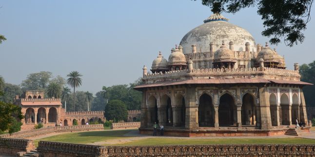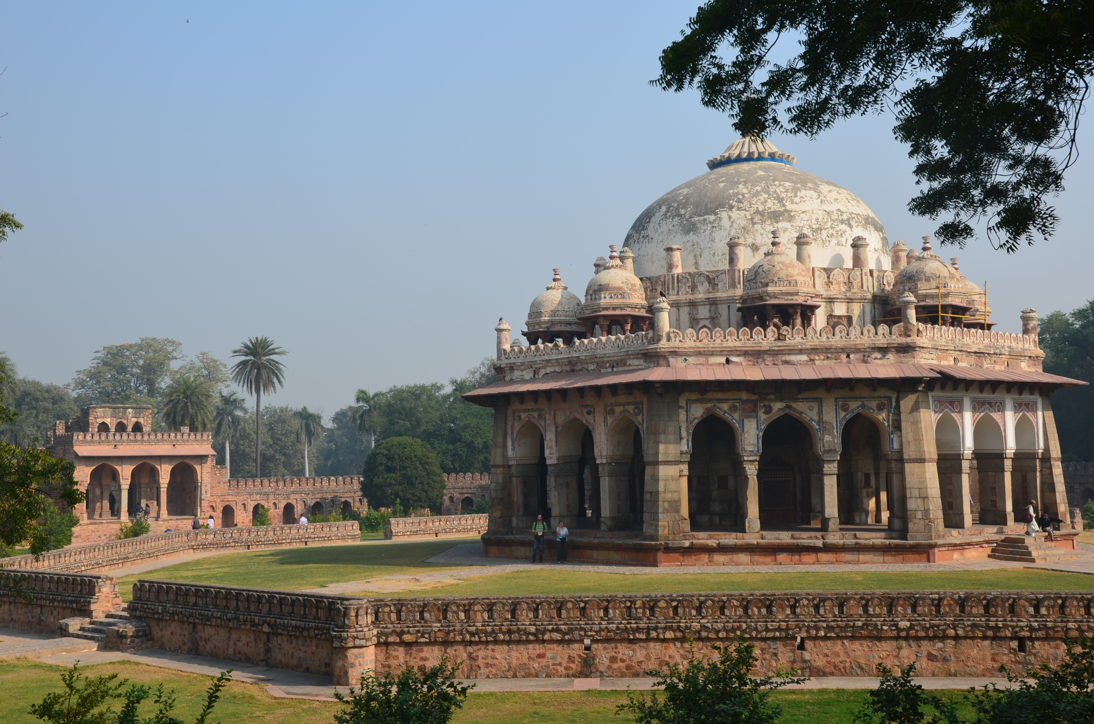 Следующий пункт назначения - Гробница Хумаюна. Это первая усыпальница-сад, построенная Хамидой Бану Бегум в честь своего погибшего супруга императора Хумаюна. Печальная ирония его гибели в том, что, посвятив всю жизнь войнам и агрессии, он погиб в 47 лет в собственной библиотеке по глупой случайности. Спускаясь по лестнице с огромной стопкой книг в руках, император услышал призыв к дневной молитве, попытался опуститься на колени, но запутался в полах халата, упал с лестницы и разбился.Прекрасный сад, разделенный каналами и фонтанчиками на 36 квадратов, постепенно заполнялся гробницами потомков Хумаюна и его приближенных, за что и получил название усыпальницы рода Тимуридов. Погулять здесь, задумываясь о течении времен, очень приятно.