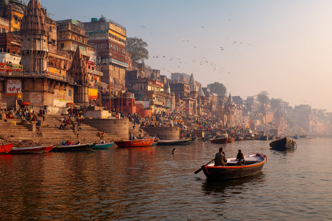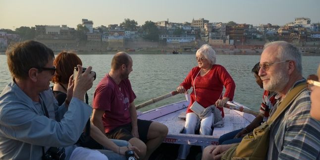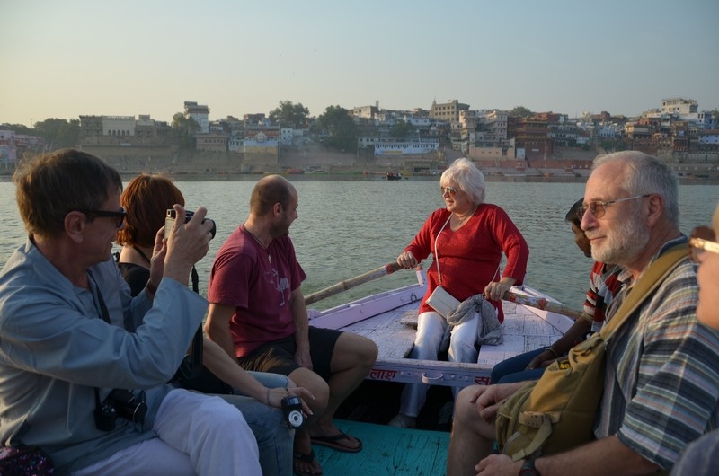 Сегодня ранний подъем, потому что нас ждет, пожалуй, одна из самых удивительных лодочных прогулок в жизни. Настоящее волшебство происходит ранним утром, когда город готовится к пробуждению. На рассвете все становится другим. В это время много паломников, которые произносят молитвы у реки Ганга, в лучах восходящего солнца, на фоне индуистских храмов. На некоторых гхатах проходят религиозные церемонии и сеансы йоги. Лодка позволяет увидеть все это другим взглядом, как-будто со стороны.