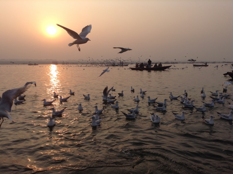 Картинки, такие странные для нас и обычные для индусов, проплывают мимо, как в кино Одни паломники совершают ритуальные омовения в реке, а кто-то просто моется в ней с мылом. Здесь же прачки (обычно мужчины) прямо в водах реки стирают белье и раскладывают на берегу разноцветные полотнища сари. Под зонтиками, готовые ответить на духовные вопросы верующих, с отрешенным видом сидят колоритно одетые брахманы. Просят милостыню нищие. Детишки играют с воздушными змеями.